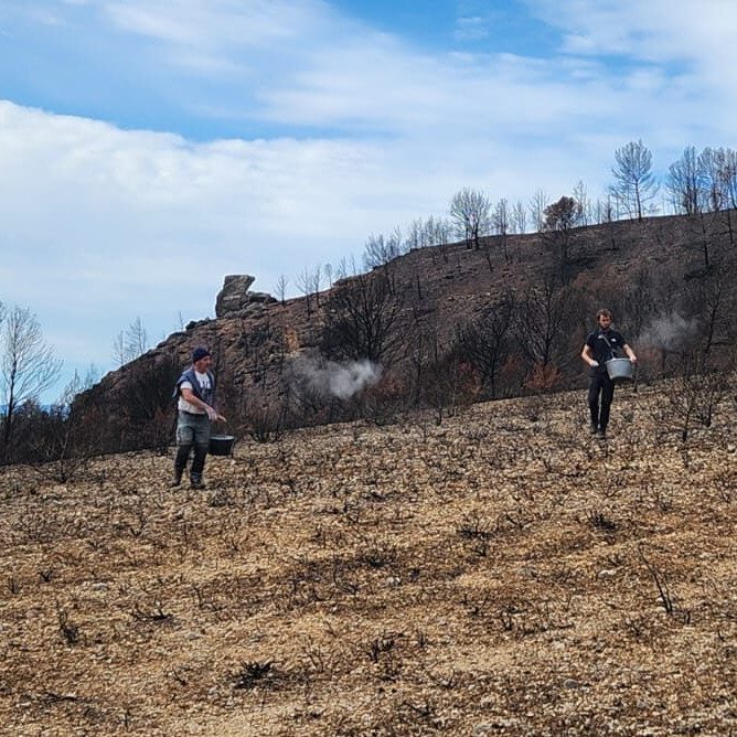 Alors que le cinquième grand feu dévorait encore les Corbières, nous nous sommes constitués en base arrière du sinistre. Dès l’ouverture des routes, nous engagions les premiers bénévoles sur le front. Mais pour faire quoi exactement ? Arpenter (c’est le nom que nous donnons à nos maraudes), Construire (ce sont les chantiers participatifs que nous encadrons), Nourrir (c’est la vocation nourricière du tiers-lieu qui s’exprime), Structurer (pour durer dans le temps).